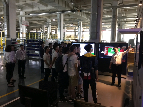 随后,几位工程师对罗克韦尔哈尔滨分公司的产品情况加以说明介绍,强调了参观工厂的安全注意事项,带领同学们对工厂从设计研发环节到车间生产部分进行了为期三十分钟的参观。在领导和工程师们的引领下,同学们更加直观地感受了Rockwell生产的自动化程度,切身地了解了在核心控制中心所有车间的人员工时消耗情况、产品的组装情况与工作进度,以及Rockwell公司在生产过程中不断向着“物物相连”方向的前进和突破。