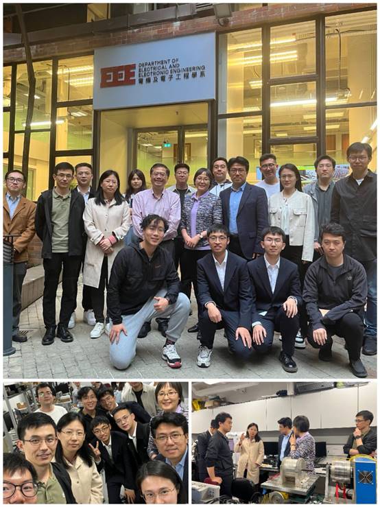 在香港理工大学,牛双霞老师和刘伟老师代表邹国棠教授团队分享了其在无刷多端口电机及无线充电、无线驱动电机等方面的研究进展,哈工大程远老师介绍了团队在新能源汽车电驱系统上多年开展的研究,张玉琦和王耀也进行了学术研究分享,双方团队针对EV电机的共性问题展开探讨和沟通。