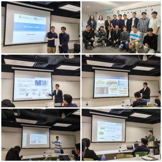在港期间,哈工大团队先后前往香港大学、香港理工大学、香港城市大学进行团队交流和学术实验室参观。在港大,王毅老师介绍了其团队在电力系统数据分析、数据隐私加密等领域的最新研究成果。哈工大博士生王耀、高博分别作了电驱动系统数字孪生、心脏泵电机两个主题报告,双方团队以此开展探讨,针对方向交叉、课题合作进行规划。