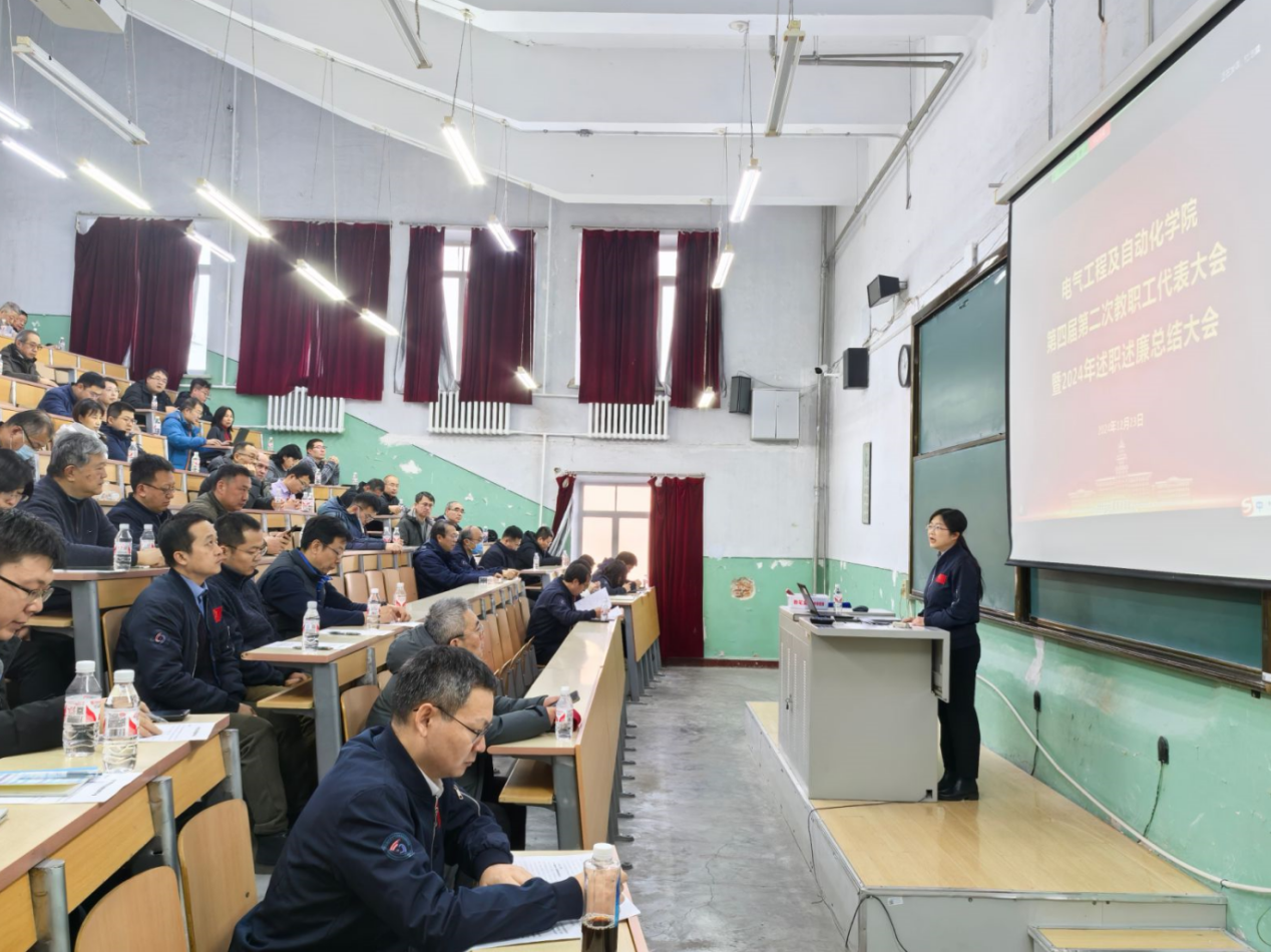 12月23日下午,秀人网 在电机楼30029教室召开第四届二次教职工代表大会和第四届二次工会会员代表大会暨2024年学院领导班子述职述廉总结大会。学院全体教职工参加会议,院长叶雪荣、党委书记聂秋月、党委副书记冉立泽、副院长于艳君、副院长禹国栋作相关报告。
