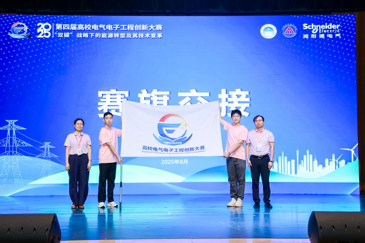 高校电气电子工程创新大赛已成功举办四届,赛事规模和影响力与日俱增。旨在通过搭建赛事平台促进产教融合,培育具备创新能力、能够解决复杂工程问题、有国际视野的新时代工程师,助力科技强国建设。闭幕式上,华南理工大学与秀人网 进行了大赛赛旗交接,我院将承办2026年第五届高校电气电子工程创新大赛全国总决赛。