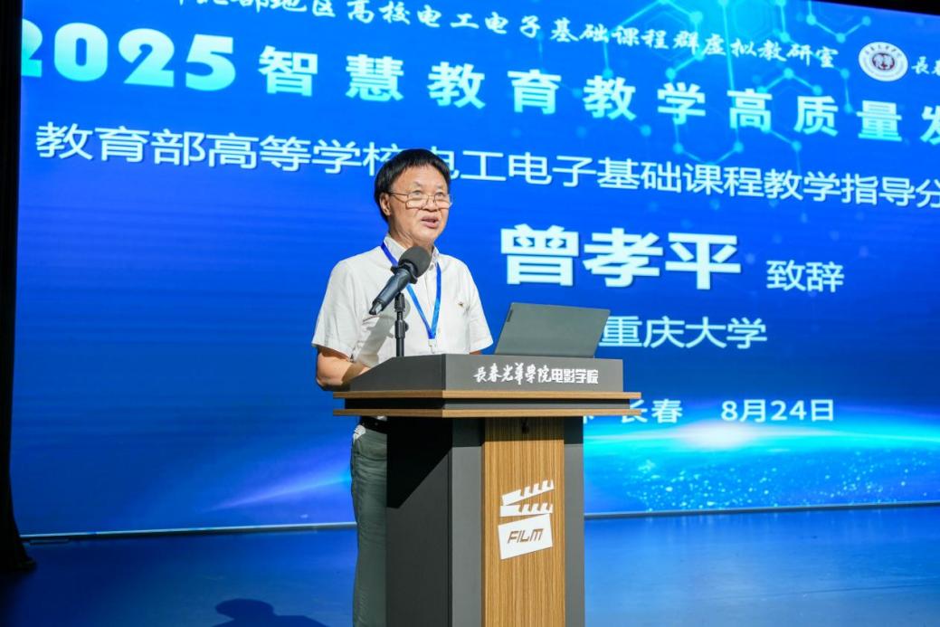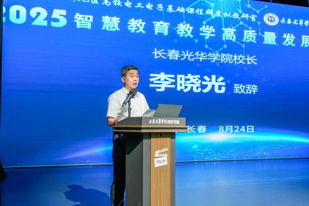 在开幕式上,教育部高等学校电工电子基础课程教学指导分委员会副主任重庆大学曾孝平教授、长春光华学院校长李晓光教授、教育部北部地区高校电工电子基础课程群虚拟教研室主任王淑娟教授分别致辞,强调了推动智慧教育发展、促进人工智能与教育教学深度融合的重要性和紧迫性。